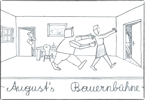 Immer im Herbst taucht ein Thema für einen uniformen Kalender auf. Die quaderförmigen Figuren symbolisieren die Einsamkeit der Menschen.