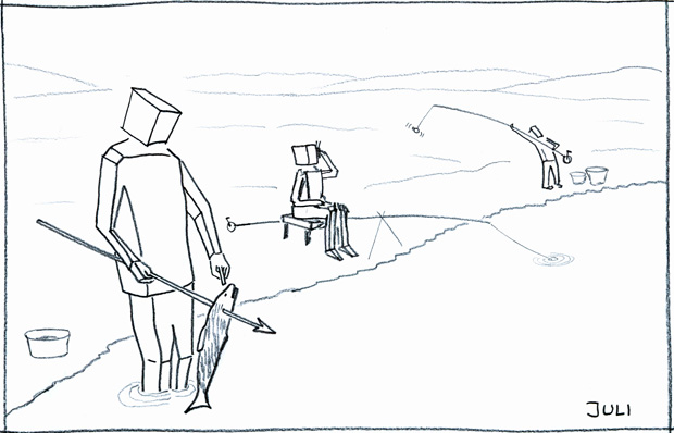 Immer im Herbst taucht ein Thema für einen uniformen Kalender auf. Die quaderförmigen Figuren symbolisieren die Einsamkeit der Menschen.