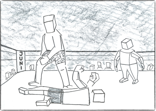 Immer im Herbst taucht ein Thema für einen uniformen Kalender auf. Die quaderförmigen Figuren symbolisieren die Einsamkeit der Menschen.
