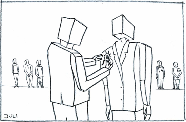 Immer im Herbst taucht ein Thema für einen uniformen Kalender auf. Die quaderförmigen Figuren symbolisieren die Einsamkeit der Menschen.